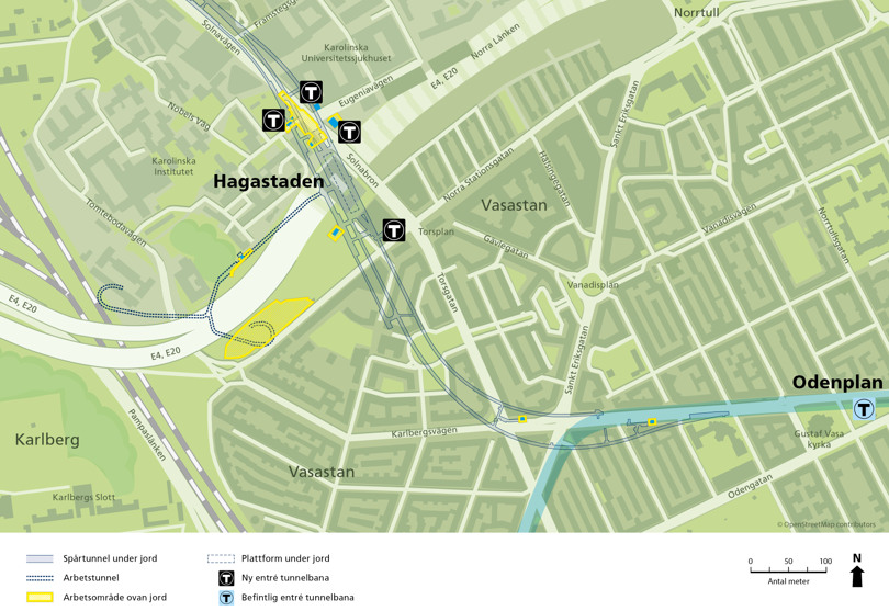 Under sommaren 2025 har den norrgående spårtunneln anslutits till befintlig Grön linje vid Odenplan.