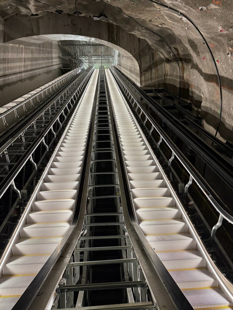 Rulltrappor på plats och installerade i Barkarbystadens båda uppgångar. Bilden längst upp är från den västra uppgången.
