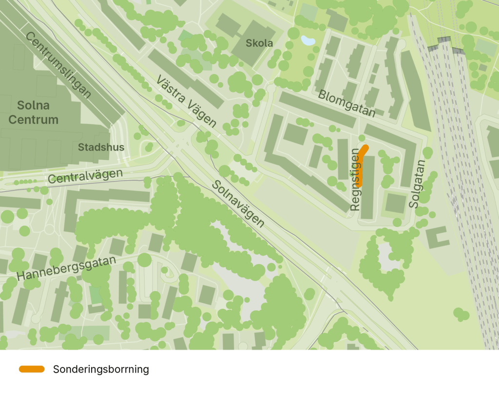 För att få plats med borrutrustning införs ett tillfälligt parkeringsförbud på Regnstigens östra sida vardagar kl. 08.00–17.00 under perioden 12 – 23 januari.