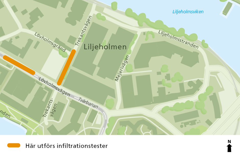 Infiltrationstester kommer att utföras längs både Lövholmsvägen och Trekantsvägen. Arbetsområdena stängslas in och det kommer att finnas skyltning och vägmarkeringar för dig som passerar. Arbetet innebär att vattenslangar dras bredvid gatan, överkörningsskydd kommer därför att finnas.