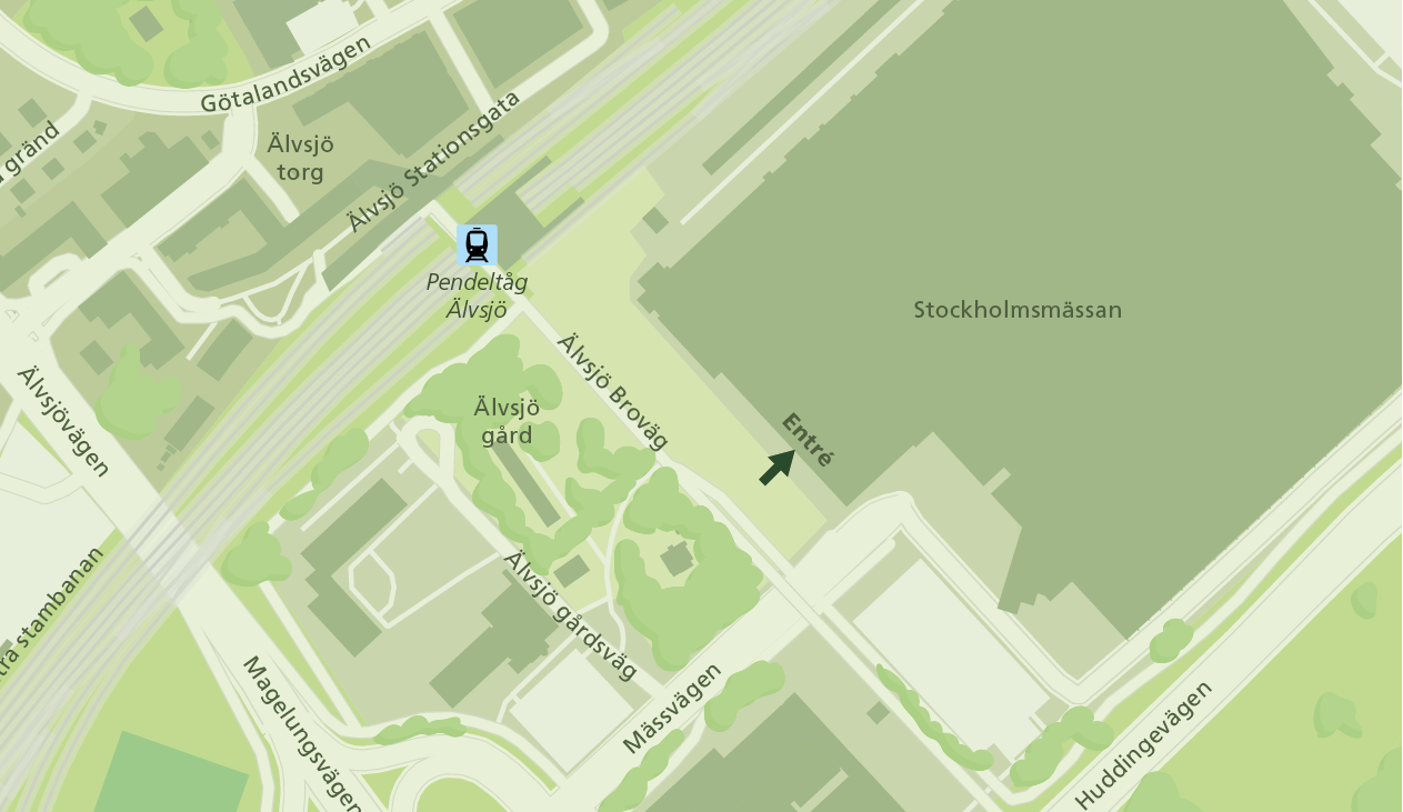 En station ska byggas under jord och uppgången placeras ovan jord mitt emellan Älvsjö station och Stockholmsmässan med entré mot Älvsjö Broväg.