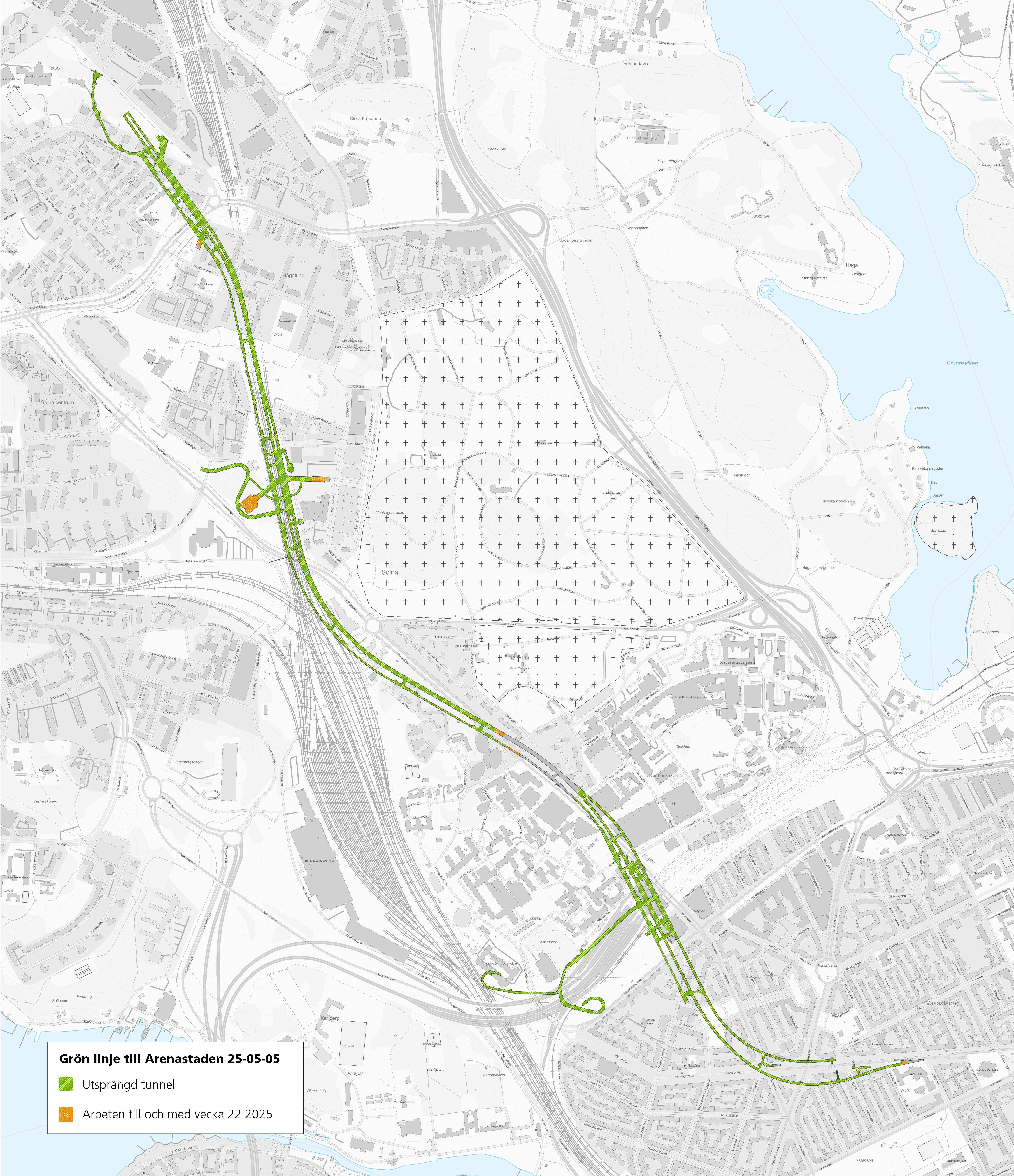 Gå till framdriftskartan för Gul linje till Arenastaden.