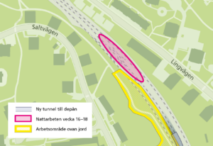 Måndag den 3 februari startar nya sprängarbeten ovan jord på nya tunnelbanans arbetsområde mellan Lingvägen och tunnelbanespåret. Sprängningar kan komma att ske dagligen vardagar under första halvan av februari, för att sedan glesas ut under senare delen av månaden. Ytterligare sprängarbeten kan komma att genomföras under våren.